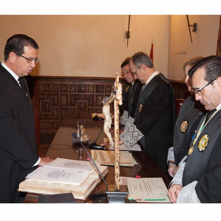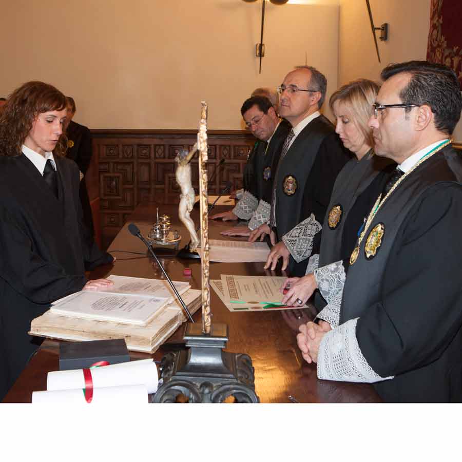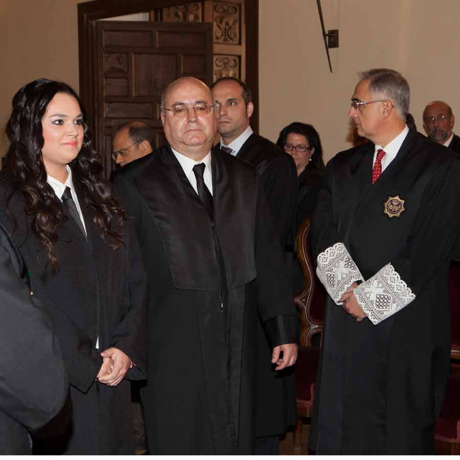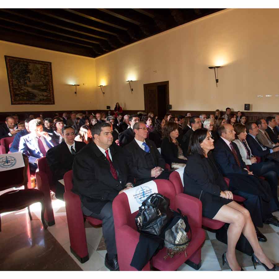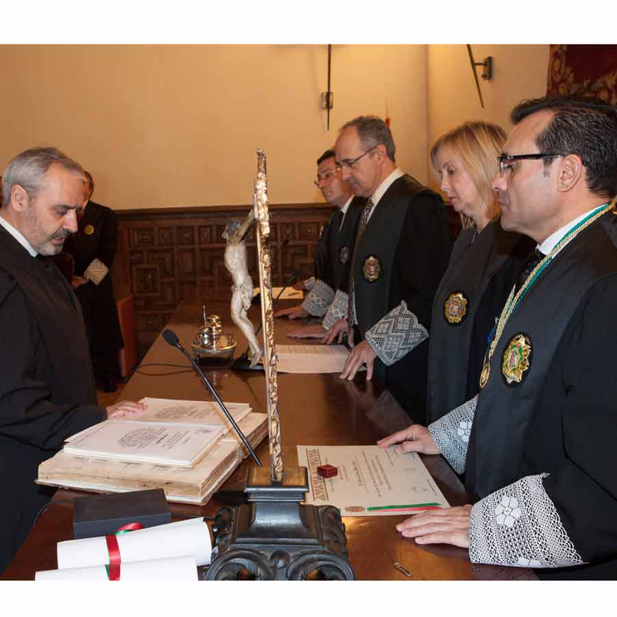 A las 13.00 horas se procedió a el Acto solemne de Jura o Promesa de Graduados Sociales Colegiados, en el Salón de Vistas de la Real Chancillería, sede del Tribunal Superior de Justicia de Andalucía, Ceuta y Melilla, acto presidido por el Ilmo. Sr. D. Rafael Toledano Cantero, Presidente de la Sala de lo Contencioso-Administrativo del Tribunal Superior de Justicia, acompañado por el Vicepresidente del Consejo General de Colegios Oficiales de Graduados Sociales de España, Excmo. Sr. D. Francisco Rodríguez Nóvez, Presidente del Consejo Andaluz de Colegios de Graduados Sociales y Presidente del Colegio Oficial de Graduados Sociales de Granada Excmo. Sr. D. José Esteban Sánchez Montoya, Fiscal Jefe de Granada Ilma. Sra, Dª. Ana Tarrago Ruiz y el Presidente de la Audiencia Nacional Ilmo. Sr. D. José Requena Paredes.