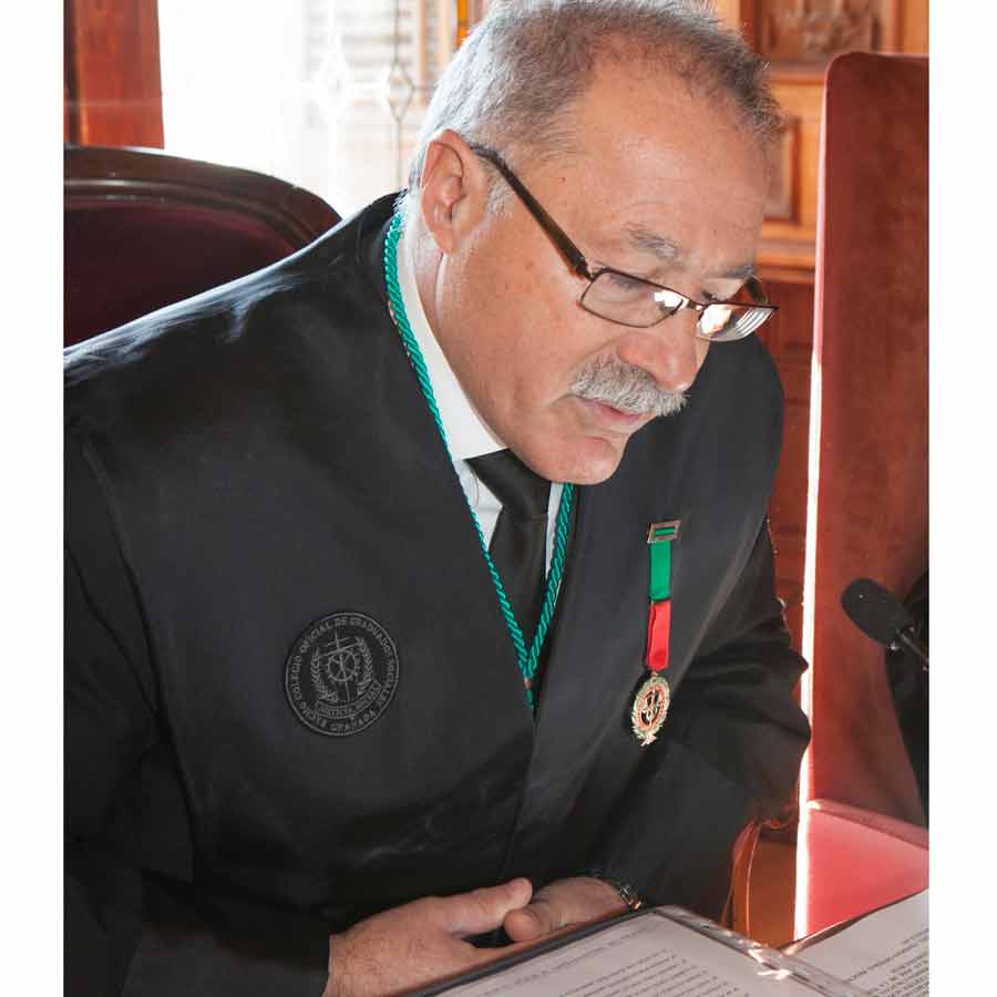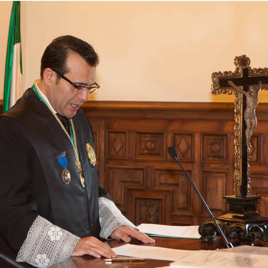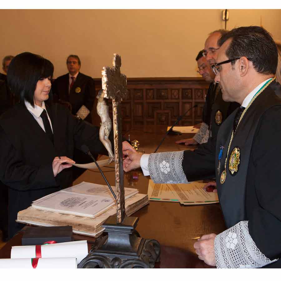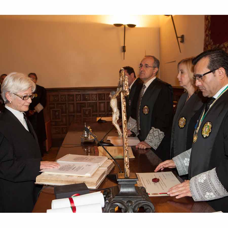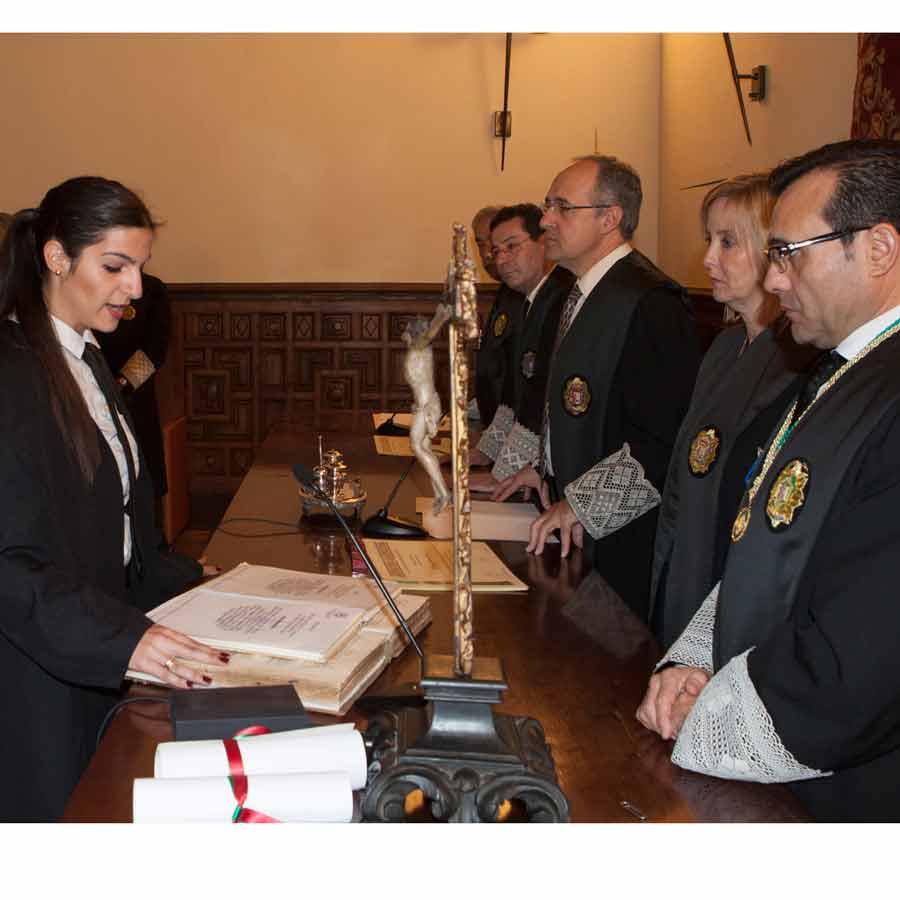 A las 13.00 horas se procedió a el Acto solemne de Jura o Promesa de Graduados Sociales Colegiados, en el Salón de Vistas de la Real Chancillería, sede del Tribunal Superior de Justicia de Andalucía, Ceuta y Melilla, acto presidido por el Ilmo. Sr. D. Rafael Toledano Cantero, Presidente de la Sala de lo Contencioso-Administrativo del Tribunal Superior de Justicia, acompañado por el Vicepresidente del Consejo General de Colegios Oficiales de Graduados Sociales de España, Excmo. Sr. D. Francisco Rodríguez Nóvez, Presidente del Consejo Andaluz de Colegios de Graduados Sociales y Presidente del Colegio Oficial de Graduados Sociales de Granada Excmo. Sr. D. José Esteban Sánchez Montoya, Fiscal Jefe de Granada Ilma. Sra, Dª. Ana Tarrago Ruiz y el Presidente de la Audiencia Nacional Ilmo. Sr. D. José Requena Paredes.