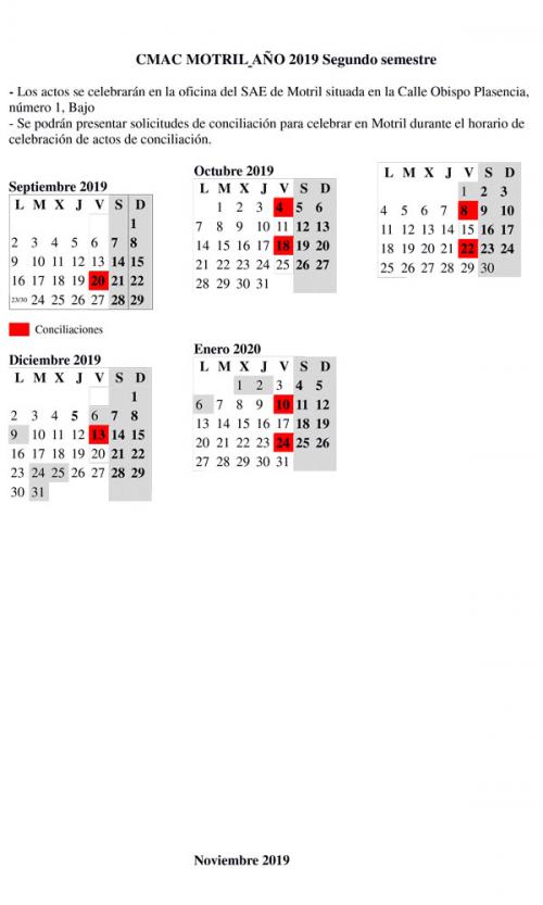 CALENDARIO CMAC MOTRIL 2º SEMESTRE 2019