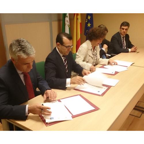 El Presidente del Consejo General, Javier San Martín y el Director General de Ibermutuamur , Heraclio Corrales se desplazaron hasta la ciudad granadina para asistir a esta firma, pues ambos apuestan firmemente por este proyecto, firma que fue suscrita por la Rectora de la Universidad de Granada, Pilar Aranda Ramírez que agradeció al Consejo y a la Mutua la puesta en marcha de esta iniciativa.