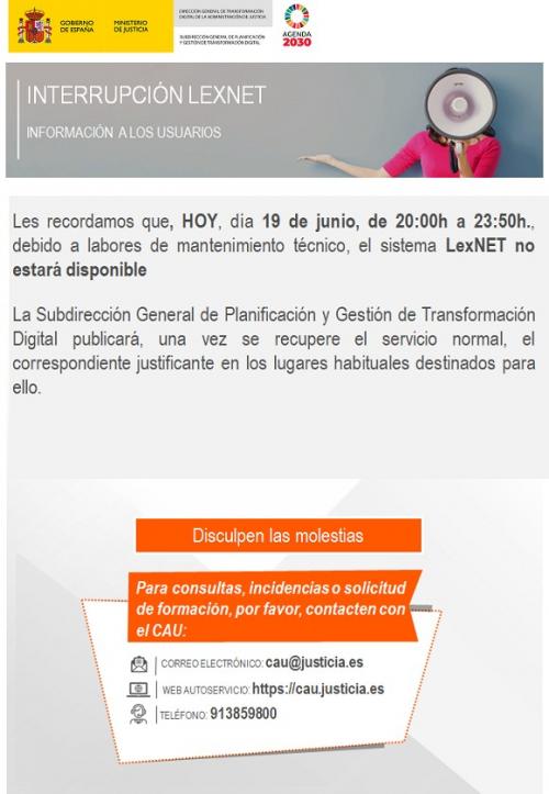 INTERRUPCIÓN TEMPORAL SERVICIO LEXNET